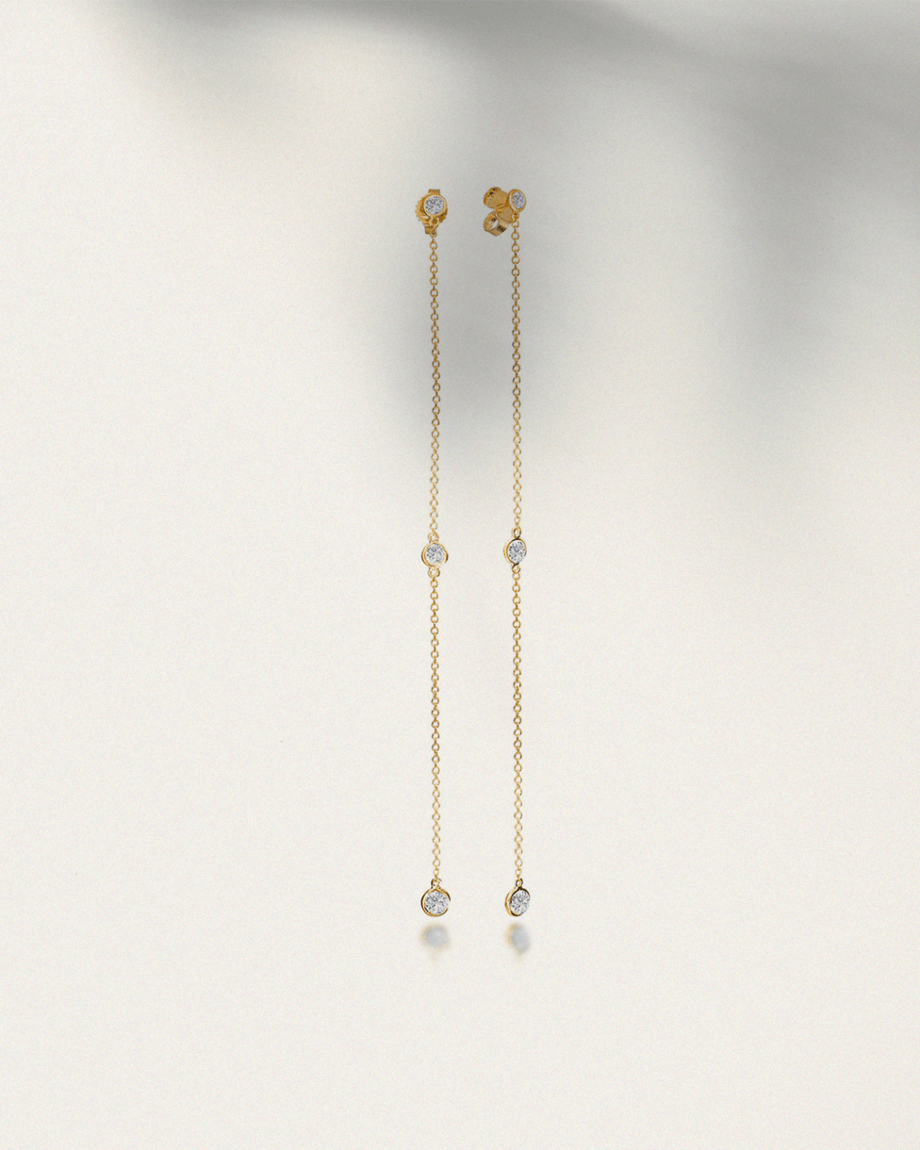 YES YES YES. These earrings are everything. Our customers love a station style, so we made them into earrings. These diamond by the yard earrings are so flattering. They subtly elongate your face. They’re dainty enough to let your outfit take the lead but the diamonds have a kick that are sure to be noticed. These earrings are one of our favorites to wear as a wedding guest. We only work with high-quality diamonds (that means GH or higher). This way – we don’t need them to be huge or a ton of them but all of our pieces SPARKLE. Just ask any of our customers. https://alexisjae.com/products/diamond-by-the-yard-earrings